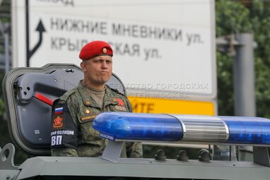 Выезд военной техники c площадки из Хорошево-Мневников перед генеральной репетицией Парада Победы
