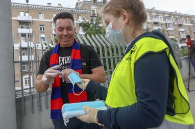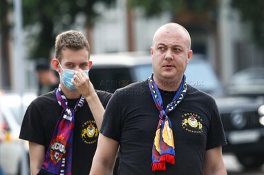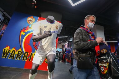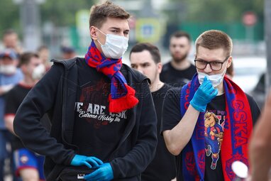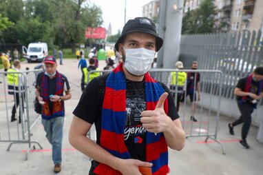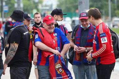Футбольные фанаты перед матчем Российской премьер-лиги ЦСКА (Москва) - «Зенит» (Санкт-Петербург) на стадионе «ВЭБ Арена».