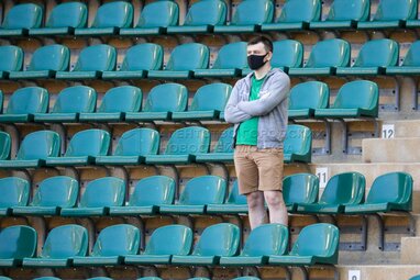 Болельщик ФК «Локомотив» перед началом футбольного матча Российской премьер-лиги «Локомотив» - «Оренбург» на стадионе «РЖД Арена».