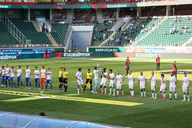 Игроки перед началом футбольного матча Российской премьер-лиги «Локомотив» - «Оренбург» на стадионе «РЖД Арена».