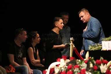 Дочь актера В.Проскурина актриса Александра Бледная (в центре) во время прощания с заслуженным артистом РСФСР Виктором Проскуриным в театральном училище имени Щукина.