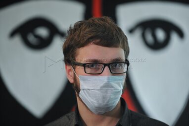 Доброволец Дмитрий Толкачев во время выписки из Сеченовского университета после вакцинации против коронавируса.