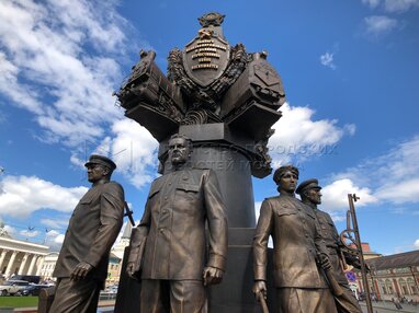 Монумент, посвященный железнодорожникам - участникам Великой Отечественной войны, открытый на Комсомольской площади в Москве.