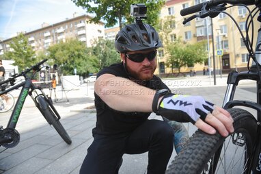 Заместитель руководителя Дирекции фотовидеофиксации ГКУ «ЦОДД» Егор Чернов во время презентации работы велопатруля.