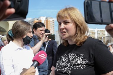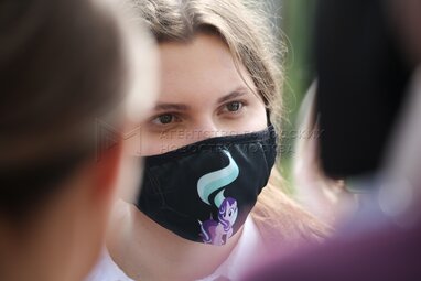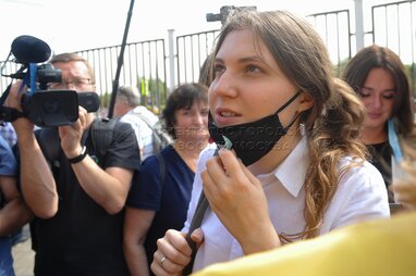 Участница движения «Новое величие» Мария Дубовик, приговоренная к 6 годам условно за участие в создании экстремистского сообщества, после оглашения приговора у здания Люблинского районного суда.