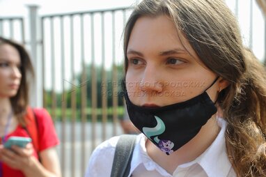 Участница движения «Новое величие» Анна Павликова, приговоренная к 4 годам условно за участие в создании экстремистского сообщества, после оглашения приговора у здания Люблинского районного суда.