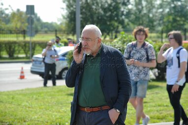 Историк Николай Сванидзе возле здания Люблинского районного суда перед оглашением приговора по делу «Нового величия».