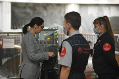 Рейд по проверке соблюдения масочного режима пассажирами в Московском метрополитене.
