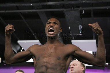 Британский боксер Умар Садик во время пресс-конференции бойцов Сергея Харитонова и Денни Уильямса.
