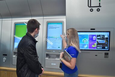 Офис Сбера нового поколения на Цветном бульваре. Сбербанк 24 сентября объявил о глобальном обновлении, представив новый бренд своей экосистемы «Сбер» и вошедшие в нее сервисы. Компания презентовала банкоматы с биометрией, отделения без окошек с операционистами, «умную» ТВ-приставку и виртуальных ассистентов.
