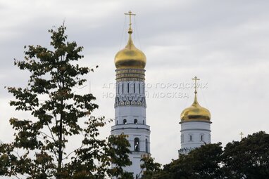 Виды Москвы. Колокольня «Иван Великий» и Успенская звонница Московского кремля.