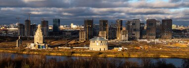 Виды Москвы. Московский кремль и Московский международный деловой центр «Москва-Сити», вид с Большого Москворецкого моста.