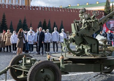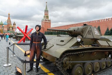Музей инсталляций под открытым небом во время торжественных мероприятиях в честь годовщины парада 7 ноября 1941 года на Красной площади. Фото: Владимир Новиков, пресс-служба мэра и правительства Москвы.