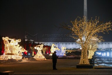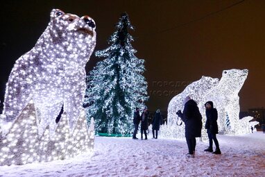 Арт-объекты в виде полярных медведей в парке у Ростокинского акведука.