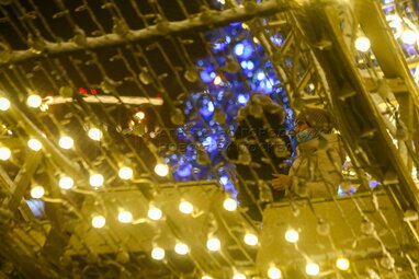 Вид с квадрокоптера на арт-объекты в виде полярных медведей в парке у Ростокинского акведука.
