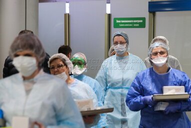 Работа врачей с больными коронавирусом в больнице имени Пирогова.