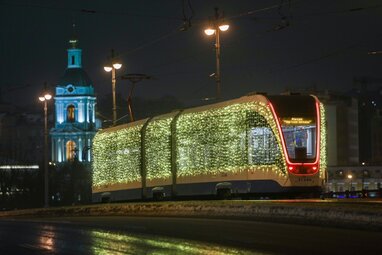 Новогодняя ночь в центре Москвы.