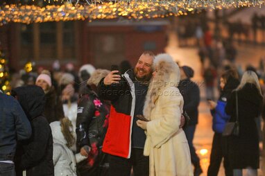 Отдых горожан в центре Москвы вечером 1 января