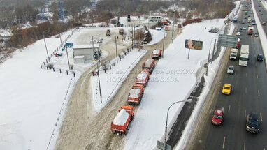 Вид с квадрокоптера на работу стационарных снегоплавильных пунктов «Каширский-1» и «Каширский-2» на юге столицы.