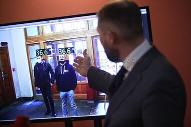 Подготовка к открытию Государственного исторического музея после его оборудования системами безопасности здоровья посетителей.