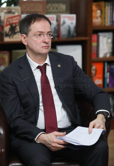 Помощник президента РФ, председатель РВИО Владимир Мединский на презентации 100 лучших книг, подготовленных Российским военно-историческим обществом, в книжном клубе «Достоевский».