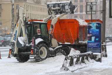 Работа коммунальных служб по устранению последствий снегопада в Москве