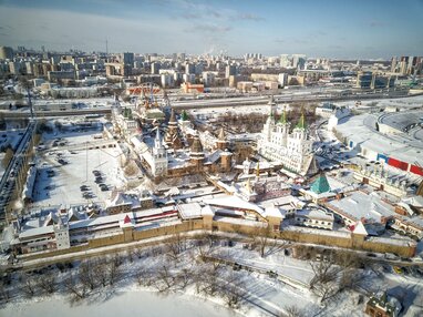 Вид с квадрокоптера на Измайловский кремль на востоке столицы.