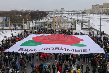 Мужское шествие на Пушкинской набережной в парке Горького в честь Международного женского дня.