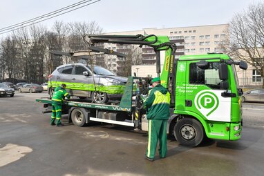 Работа инспекторов «Московского паркинга» по эвакуации автомобилей за нарушения правил парковки