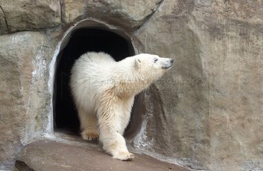 Белый медвежонок, который был спасен с острова Большевик Красноярского края, где прибился к золотодобытчикам, в вольере Московского зоопарка.