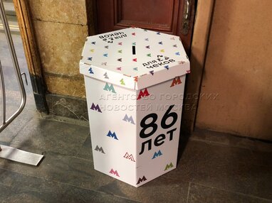 Установленный на станции «Киевская» Кольцевой линии Московского метрополитена специальный ящик для сдачи кассовых чеков на переработку.
