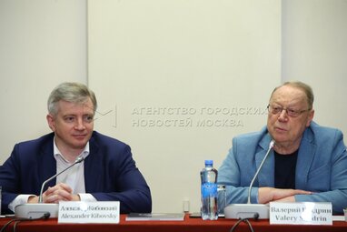 Руководитель департамента культуры Москвы Александр Кибовский (слева) во время пресс-конференции к открытию XV Международного театрального фестиваля имени Чехова.