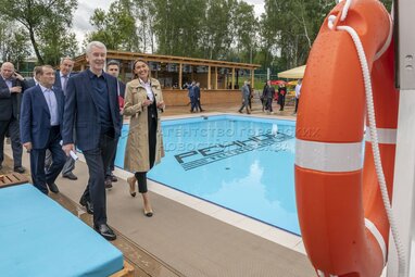 Мэр Москвы Сергей Собянин открыл пляжную зону отдыха с бассейнами на набережной Северного речного вокзала. Фото: Владимир Новиков, пресс-служба мэра и правительства Москвы.