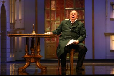 Актер Евгений Герасимов в роли Аристарха Владимирыча Вышневского во время показа премьерного спектакля «Доходное место» по пьесе Александра Островского, в постановке Дмитрия Астрахана в Московском государственном театре «Ленком Марка Захарова».