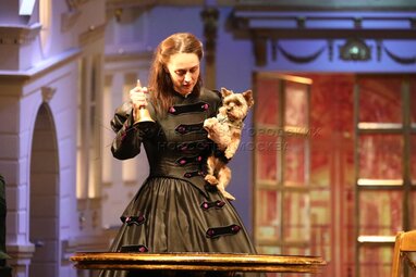 Актриса Олеся Железняк в роли Фелисаты Герасимовны Кукушкиной во время показа премьерного спектакля «Доходное место» по пьесе Александра Островского, в постановке Дмитрия Астрахана в Московском государственном театре «Ленком Марка Захарова».