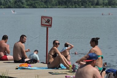 Жаркая погода в Москве 21 июня 2021 года. Отдых на берегу реки Химка, парка Северное Тушино.