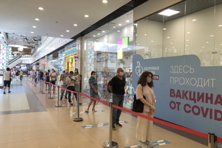 Очередь на вакцинацию от коронавируса в ТРЦ Columbus на юге Москвы.