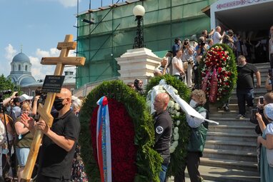 Прощание с музыкантом и актером Петром Мамоновым в Донском монастыре