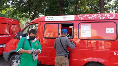 Работа мобильных касс у станции метро «Спортивная» на временно закрытом участке Сокольнической линии