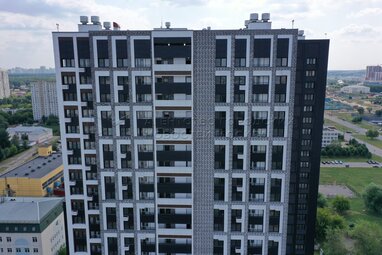 Вид с квадрокоптера на первый дом по программе реновации в Солнцево, на ул. Щорса, д. 15.