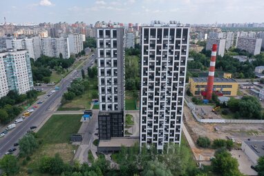 Вид с квадрокоптера на первый дом по программе реновации в Солнцево