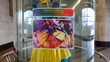 Выставка костюмов на станции метро «Воробьевы горы», посвященная 50-летию Большого Московского государственного цирка на проспекте Вернадского.
