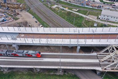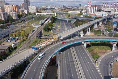 Вид с квадрокоптера на строительство четвертого маршрута Московских центральных диаметров (МЦД-4) и Северного дублера Кутузовского проспекта в районе московского международного делового центра «Москва-Сити».