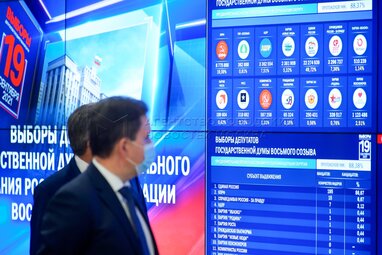 Работа информационного центра Центральной избирательной комиссии РФ 20 сентября 2021 года после выборов в Госдуму.