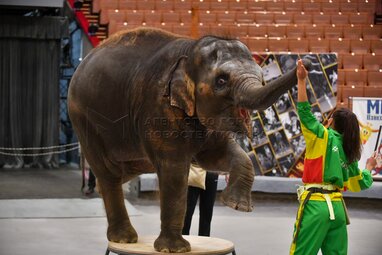 Слонихе Николь в Большом Московском цирке подарили гигантскую тыкву