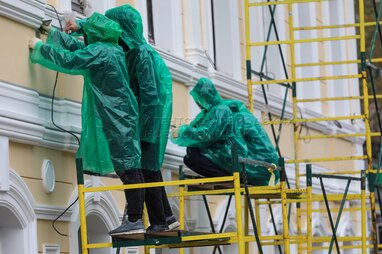 Осень в Москве. Скульптура «Тракторист и колхозница» на арке главного входа ВДНХ.