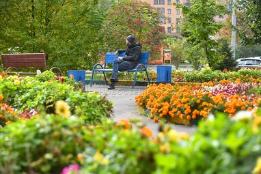 Осень в Москве. Горожане возле Большого Новодевичьего пруда.