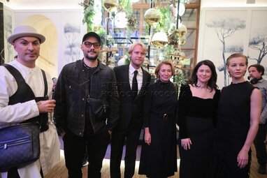 Журналист, телеведущая Софико Шеварднадзе, режиссер Федор Бондарчук, телеведущая Дарья Златопольская и генеральный директор, председатель совета директоров Rambler&Co Александр Мамут (слева направо) на премьере фильма «Бондарчук. Battle» в кинотеатре «Художественный».