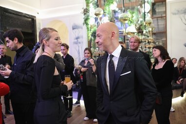 Вице-президент Международной федерации ассоциаций кинопродюсеров Владимир Досталь и его дочь, актриса Дария Досталь на премьере фильма «Бондарчук. Battle» в кинотеатре «Художественный».