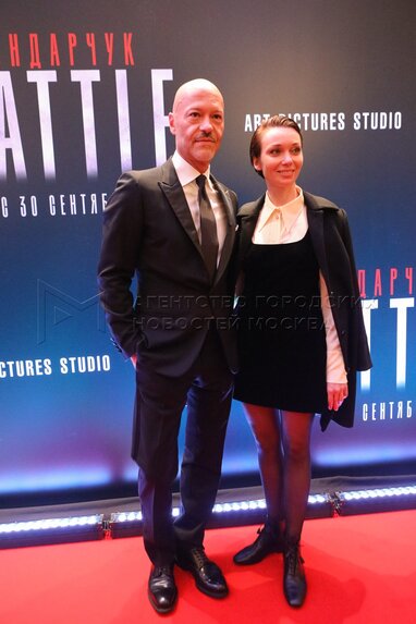 Актер Константин Крюков и его супруга, актриса Алина Алексеева на премьере фильма «Бондарчук. Battle» в кинотеатре «Художественный».